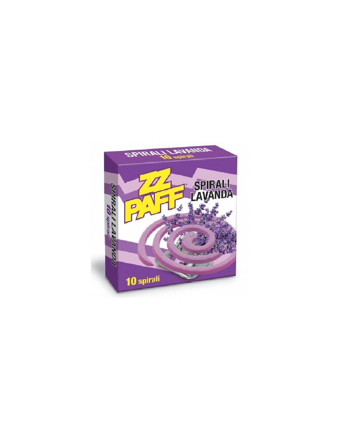 ZZ Paff Spriali Lavanda 10 Pz: profumate alla lavanda per terrazzi, giardini e campeggi. Agisce immediatamente dopo l'accensione emanando un gradevole profumo di lavanda. Permette di godere un piacevole soggiorno in luoghi e spazi aperti come terrazzi, giardini, porticati, dehor , campeggi.