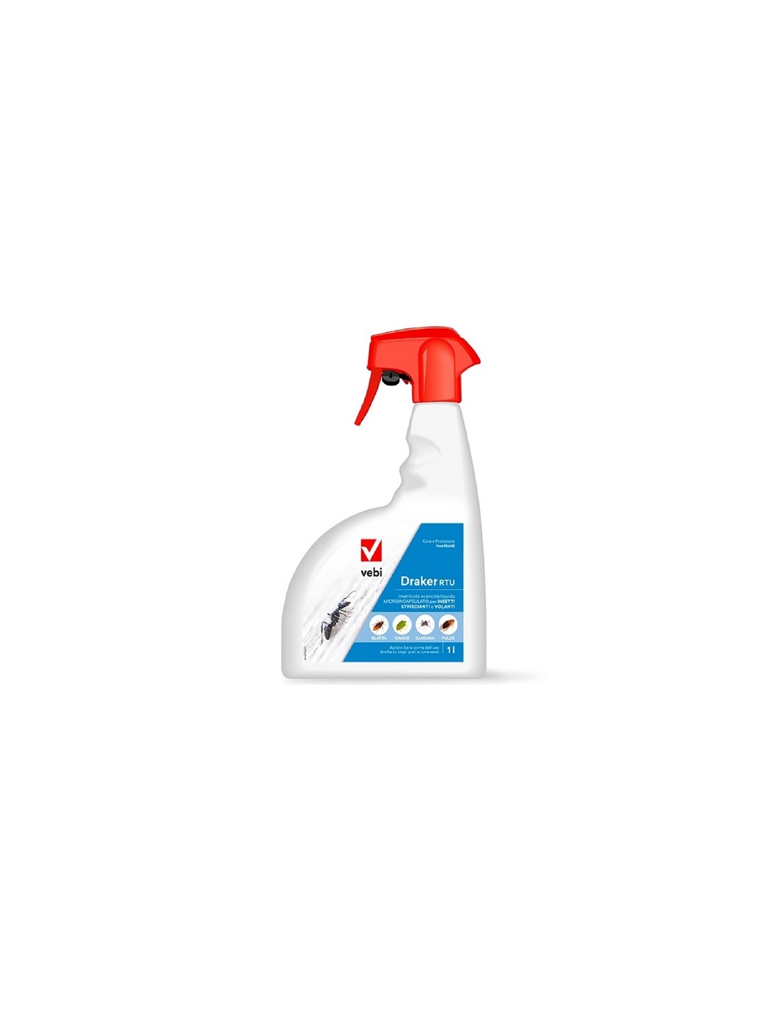 DRAKER RTU è un insetticida acaricida liquido microincapsulato pronto all’uso a largo spettro d’azione e lunga persistenza. É efficace nel controllo degli insetti striscianti e volanti, eliminando gli insetti presenti al momento del trattamento e prevenendo l’insorgere di successive infestazione per 2-3 settimane. Massima abbattenza ed efficacia prolungata.