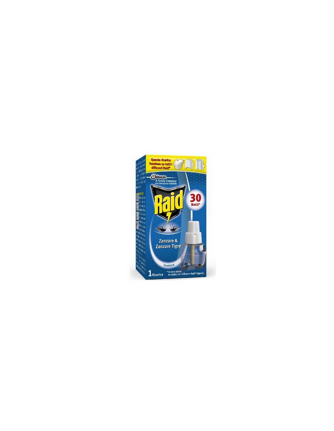 Raid Liquido offre 30 notti (8 ore per notte) di azione costante per tutta la notte contro le zanzare tigre (Aedes albopictus) e zanzare comuni (Culex pipiens), anche a finestre aperte e luci accese. Raid Liquido offre una protezione continua, discreta e inodore. Raid Liquido protegge una stanza di 20m3