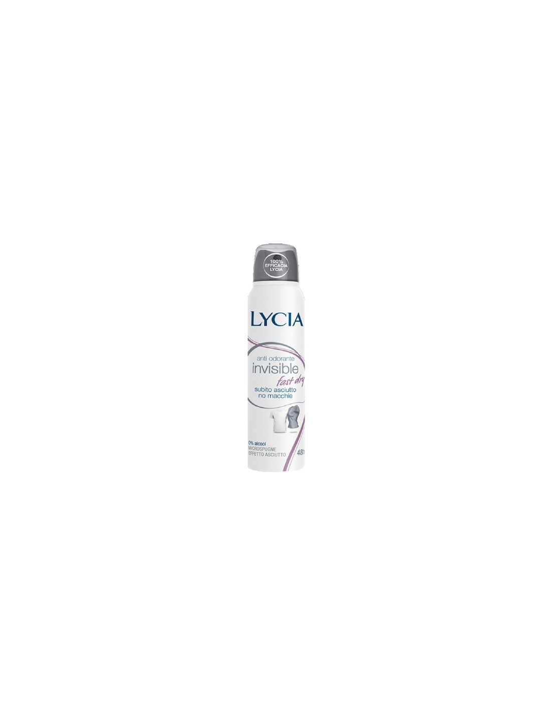 Lycia Antiodorante Invisible Spray 150ml -Grazie alla sua formula innovativa si asciuga in un attimo e riduce la formazione di macchie sui tessuti sia bianchi che neri. L'esclusivo Sistema Antiodorante Lycia, con microspugne assorbenti, elimina i cattivi odori e regola la sudorazione per 48 ore di protezione invisibile. Senza alcool, coloranti e conservanti. Dermatologicamente testato.