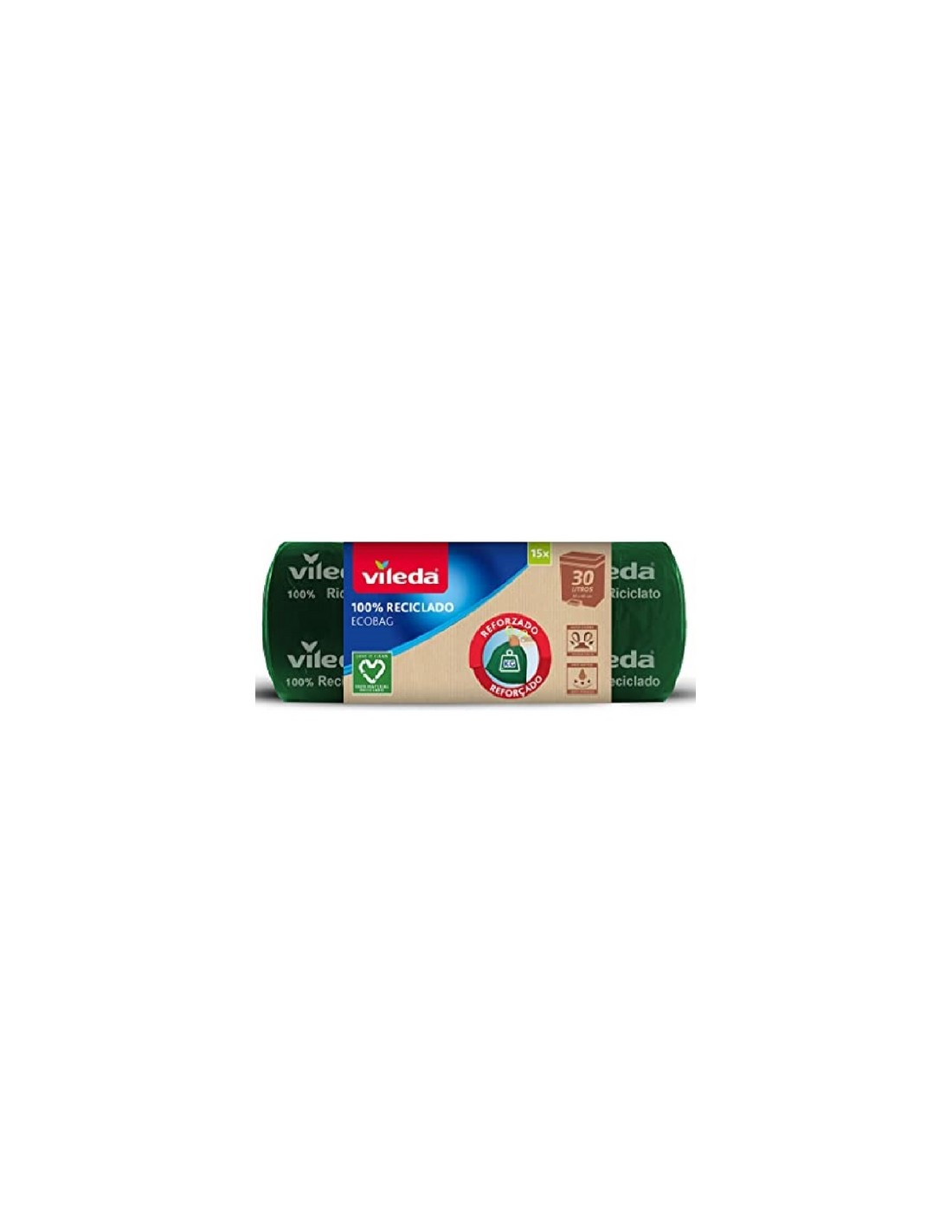 Nuova gamma dei sacchi immondizia Vileda, realizzata con materiale 100% riciclato, ultra resistente grazie al triplo strato, con fondo antigoccia per non lasciar passare i liquidi e con chiusura facilitata grazie alle maniglie estraibili.