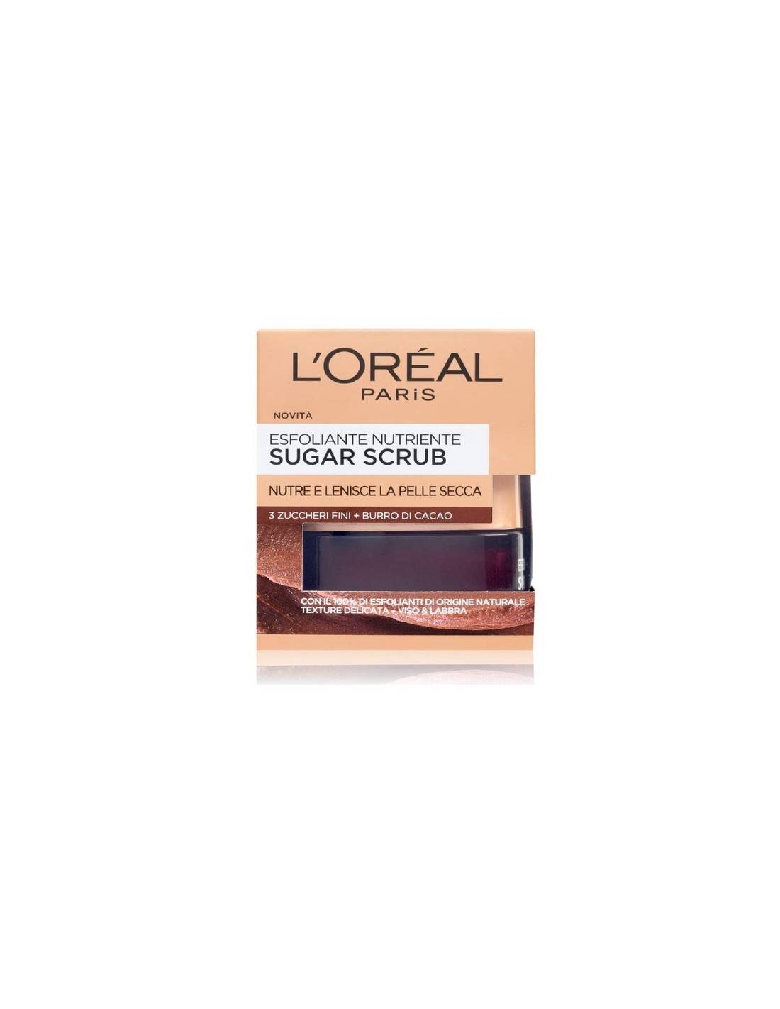 L'Oreal Paris Sugar Scrub Esfoliante Nutriente Viso & Labbra 50 ml. Formula con il 100% di attivi esfolianti di origine naturale ricchi di nutrienti essenziali, selezione di cristalli fini di 3 zuccheri (grezzo, di canna, bianco) per un'esfoliazione intensa e delicata. Formula caratterizzata da una combinazione di ingredienti nutritivi e attivi, oltre a favorire un'esfoliazione delicata si prende cura della tua pelle. Burro di cacao, ricco in acidi grassi essenziali per lenire la pelle secca. Olio di cocco, ricco di lipidi, conosciuto per proteggere la barriera cutanea. Chicchi di cacao, per rimuovere le cellule morte e rendere morbida la pelle