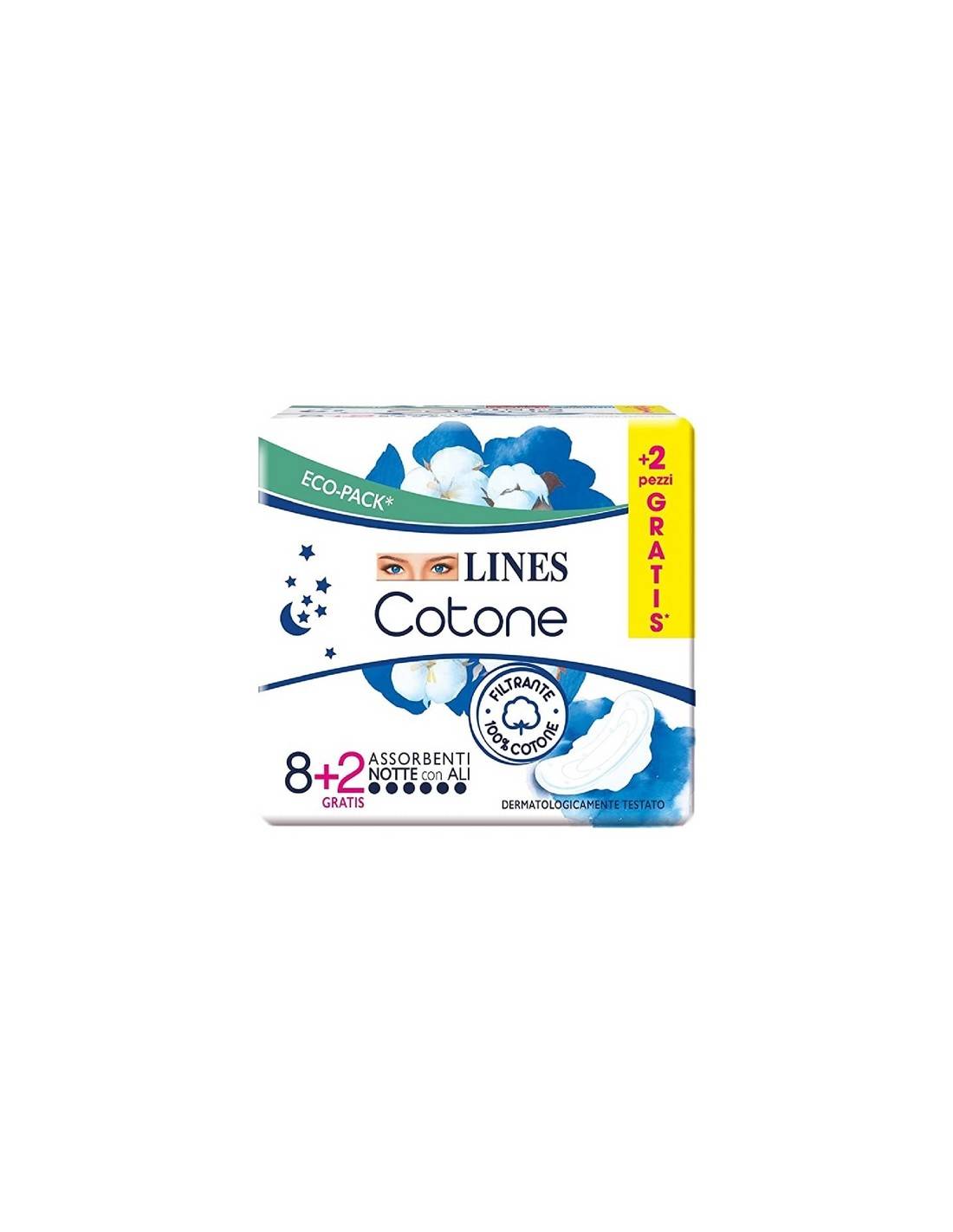 Lines Cotone assorbente Notte con ali 8 + 2 gratis