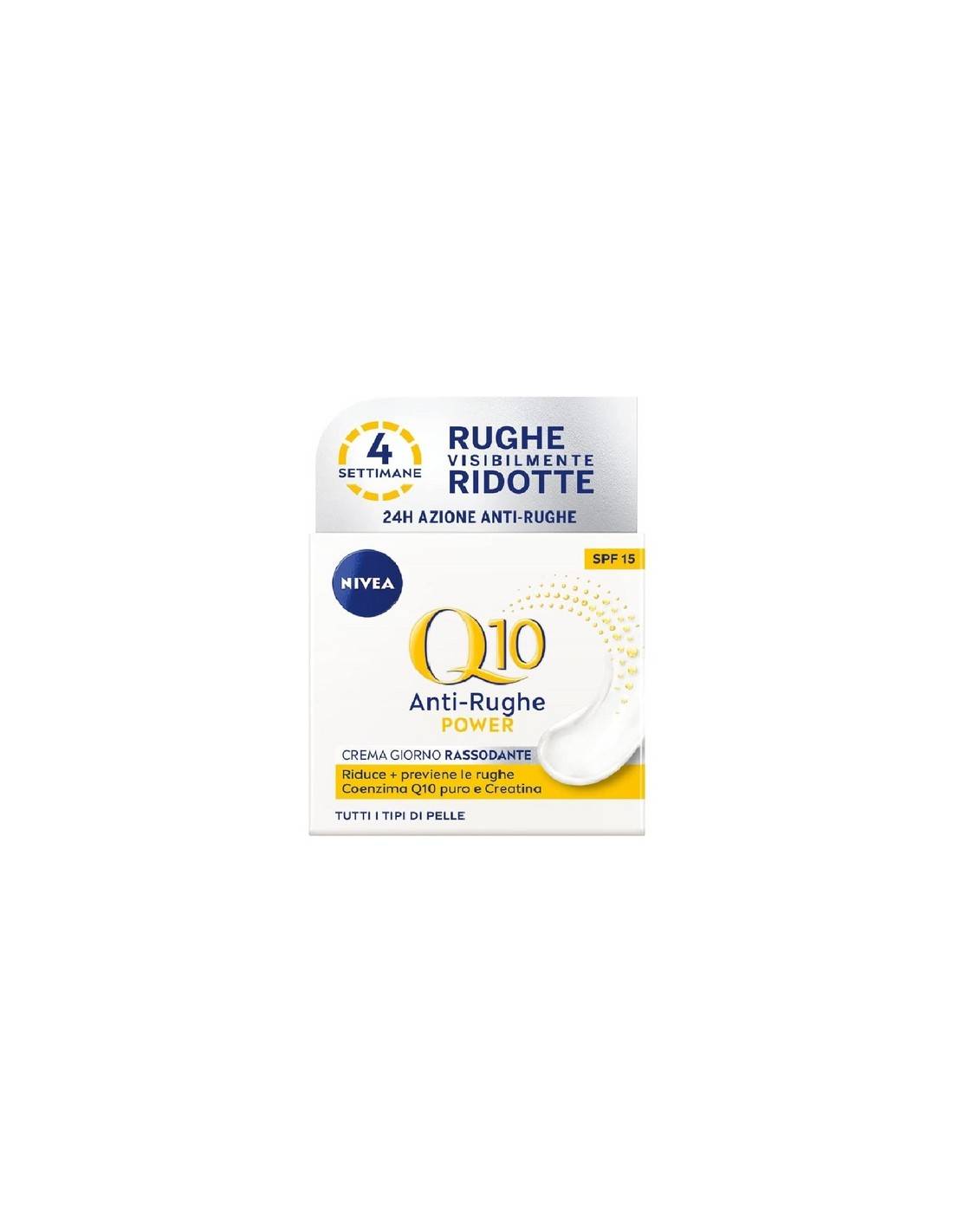La formula brevettata combatte efficacemente e previene le linee sottili e le rughe, lasciando la pelle più tonica al tatto. Contiene Coenzima Q10 identico a quello della pelle, potente anti-ossidante e naturale difesa anti-età, combinato con Creatina, che stimola la naturale produzione di collagene della pelle, per un'azione anti-rughe efficace.