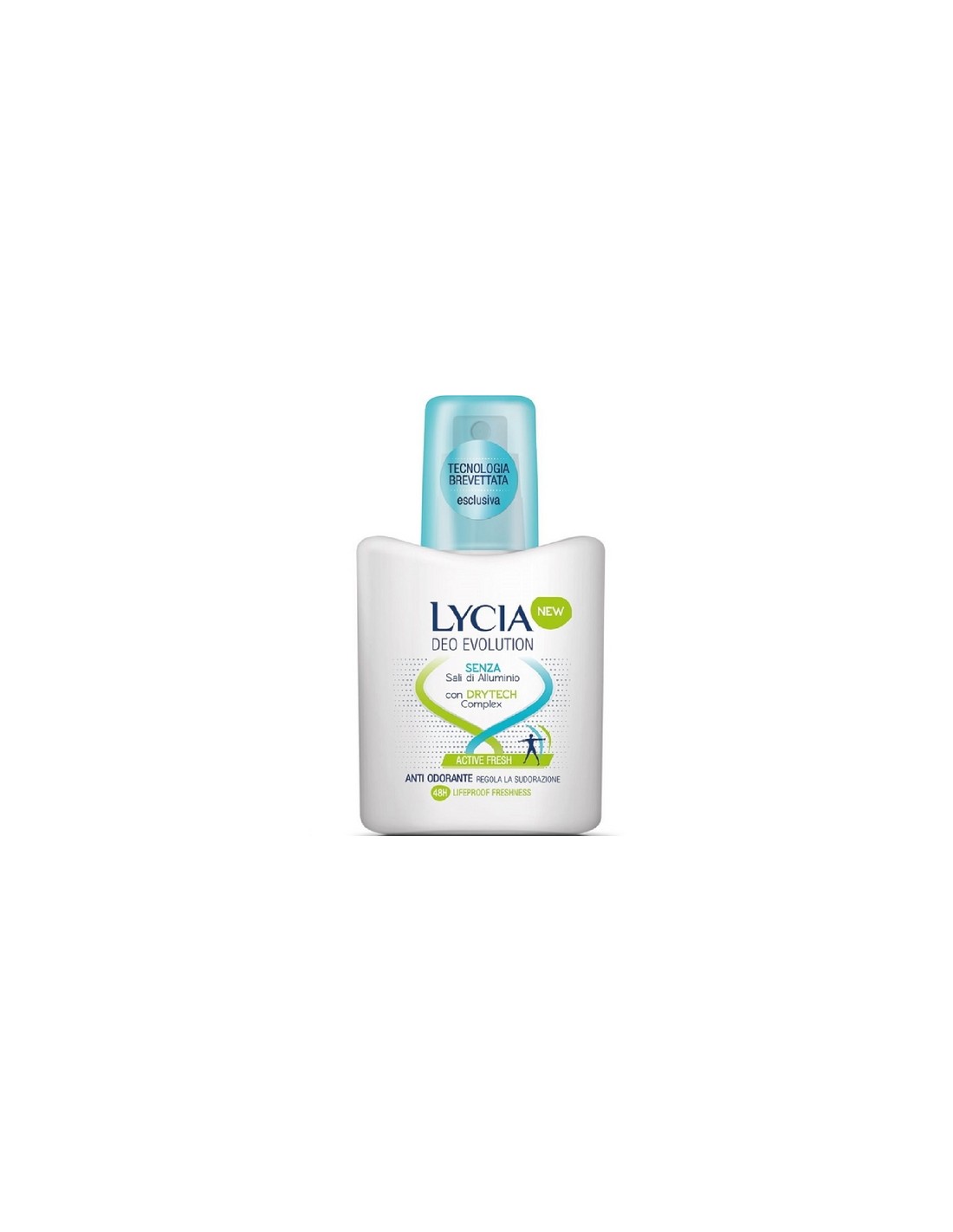 La nuova generazione della deodorazione efficace. Per uno stile di vita attivo e sempre in movimento. 48 h di protezione fresca e asciutta anche durante l'attività fisica, senza Sali di alluminio.L'innovativa formula con Drytech Complex*, tecnologia esclusiva Lycia, elimina efficacemente i cattivi odori e regola la sudorazione senza bloccarla, donando una sensazione di comfort e freschezza unica Profumo con tecnologica Deoactive Dermatologicamente testato Formula delicata che lascia la pelle morbida.