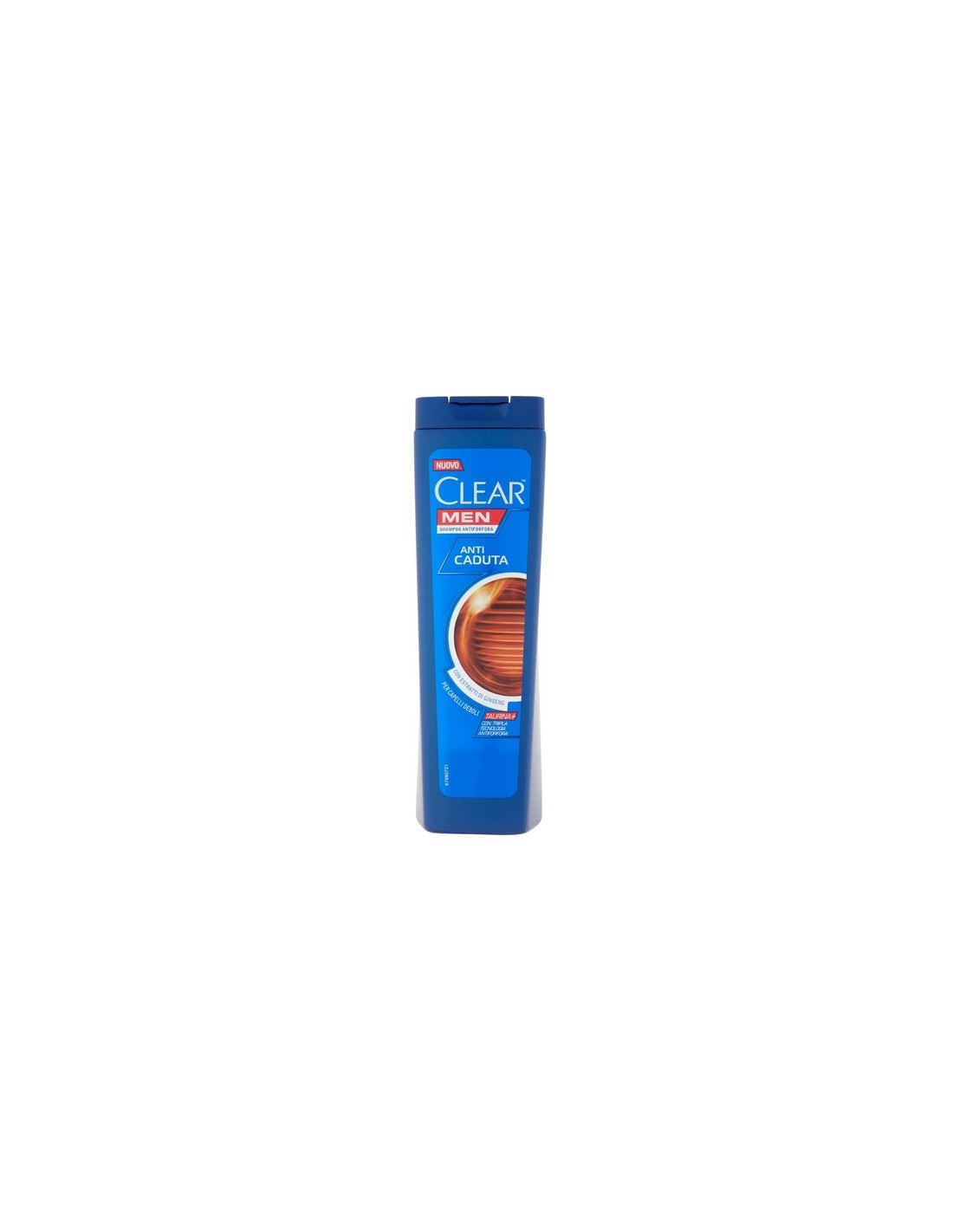 CLEAR MEN Shampoo Anti Caduta con estratti di Ginseng per capelli deboli. Rafforza i capelli, rendendoli più sani e resistenti alla caduta.Progettato per la cute dell'uomo, più secca e incline allo sviluppo della forfora. Con Tripla Tecnologia Antiforfora, Taurina+ e Vitamina B3. Rimuove l'eccesso di sebo dalla cute e lascia i capelli liberi dalla forfora.