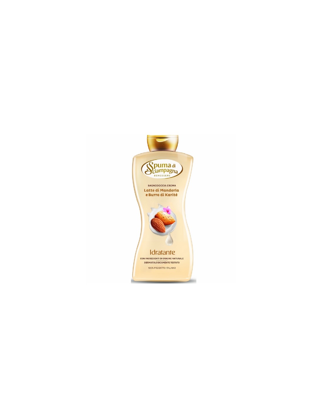 Spuma Di Sciampagna Benessere Idratante Bagnodoccia Crema Latte Di Mandorla E Burro Di Karité 650 Ml: Bagnodoccia crema Idratante è ideale per riscoprire ogni giorno la bellezza naturale e ritrovare il benessere essenziale. La sua formula è arricchita con Latte di Mandorla e Burro di Karité, ingredienti naturali sapientemente scelti. Il suo morbido profumo di mandorle dolci, e la sua formula cremosa, grazie a una innovativa combinazione di attivi idratanti e condizionanti, accarezzano il corpo e regalano ogni giorno il piacere avvolgente di un abbraccio.Dermatologicamente testato. Rispetta il pH naturale della pelle. Prodotto 100% Italiano.