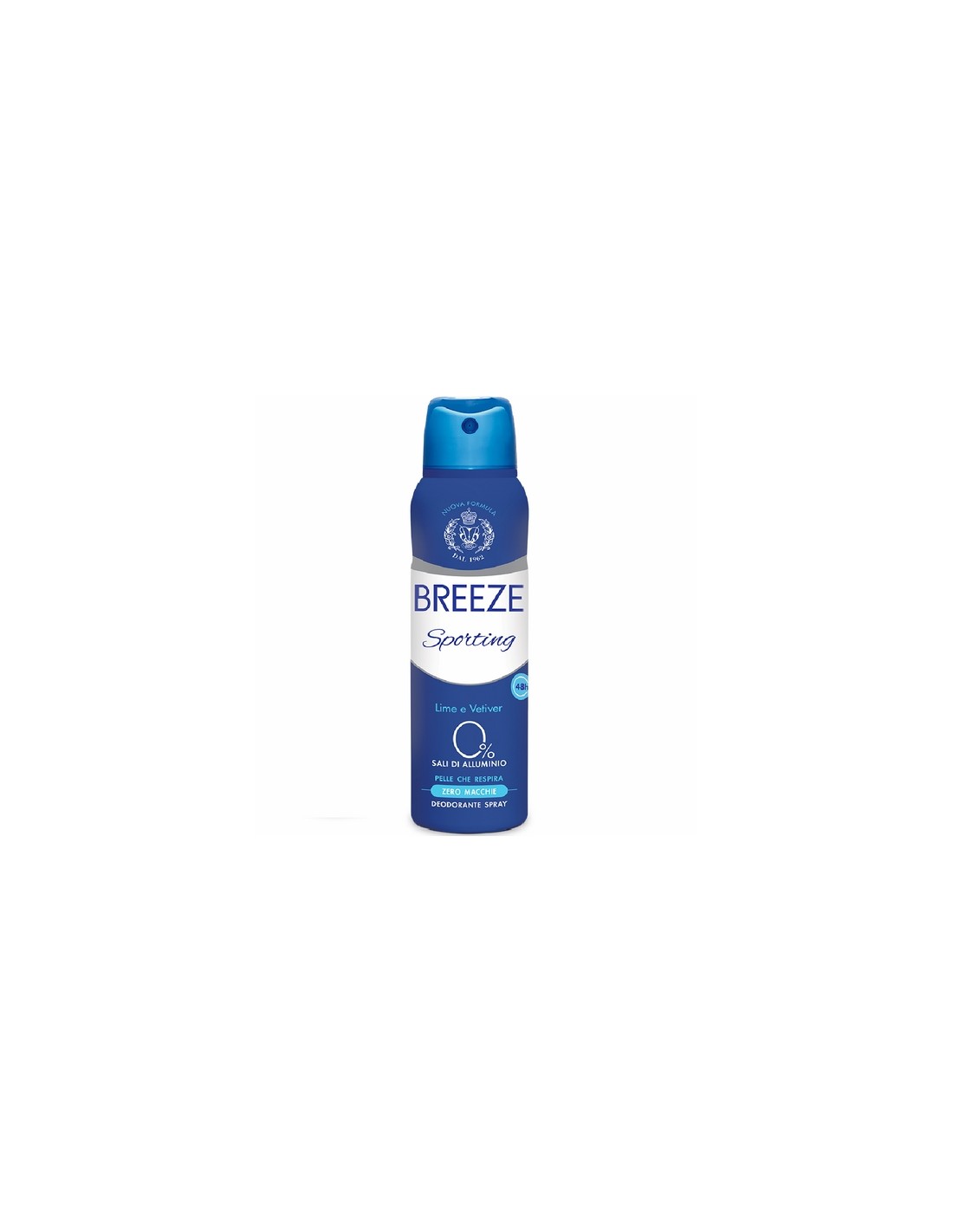 Breeze deodorante spray sporting 48h rigenerante dona freschezza e comfort lungo tutta la giornata, lasciando respirare correttamente la pelle. L'assenza di Sali di alluminio evita la formazione di macchie bianche sui tessuti e non ostruisce i pori. Dolce e delicato.