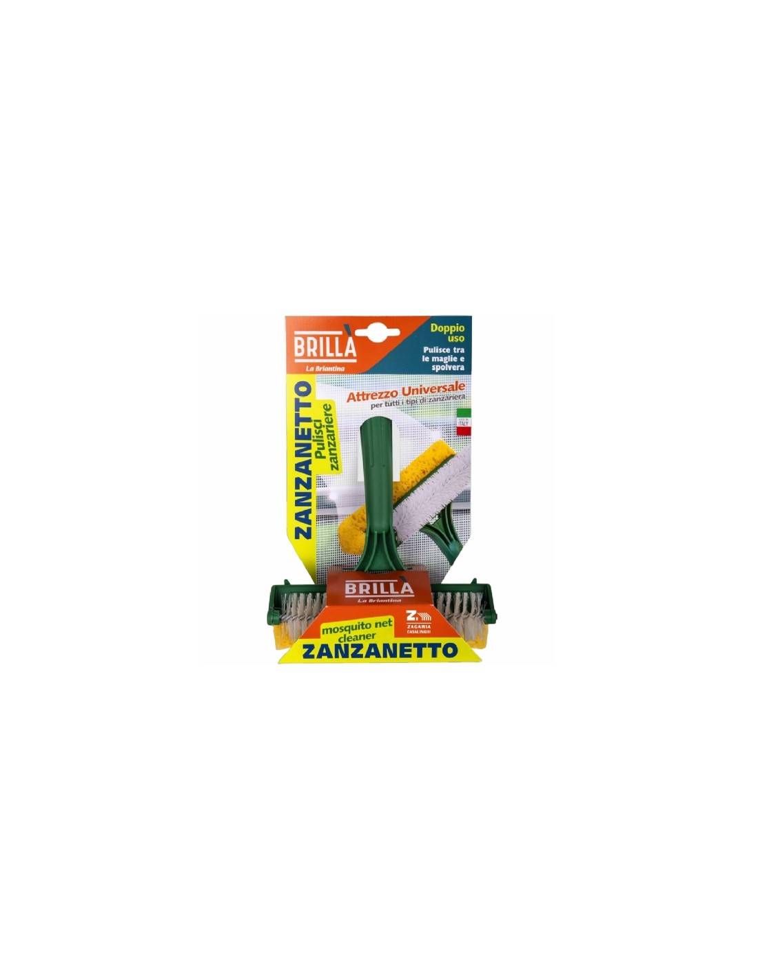 Attrezzo pulisci zanzariere Zanzanetto, adatto a tutti i tipi di zanzariera. L'azione combinata del rullo e della spugna permetta una perfetta pulizia della zanzariera. Utilizzo: passa il rullo sulla zanzariera esercitando una leggera pressione per fare uscire dalle maglie polvere e sporco successivamente usa la spugna umida per rimuovere lo sporco. L'attrezzo è lavabile con getto d'acqua. L'impugnatura è dotata di filetto universale per poter attaccare qualsiasi manico. Struttura e setole in polipropilene, spugna in poliuretano.
