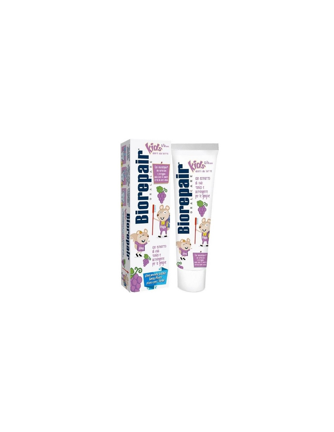 Lo smalto dei denti dei bambini è più sottile e vulnerabile di quello degli adulti. Remineralizzarlo è importante per difenderlo dagli attacchi degli acidi degli zuccheri. Biorepair® Kids è l'unico che contiene microRepair® che rafforzano lo smalto dei denti decidui favorendo un sano e corretto sviluppo dei denti permanenti. La sua efficacia è clinicamente testata. La formula è delicata, dal gusto fruttato e contiene l'estratto di Uva dalle proprietà astringenti e tonificanti per le gengive.
