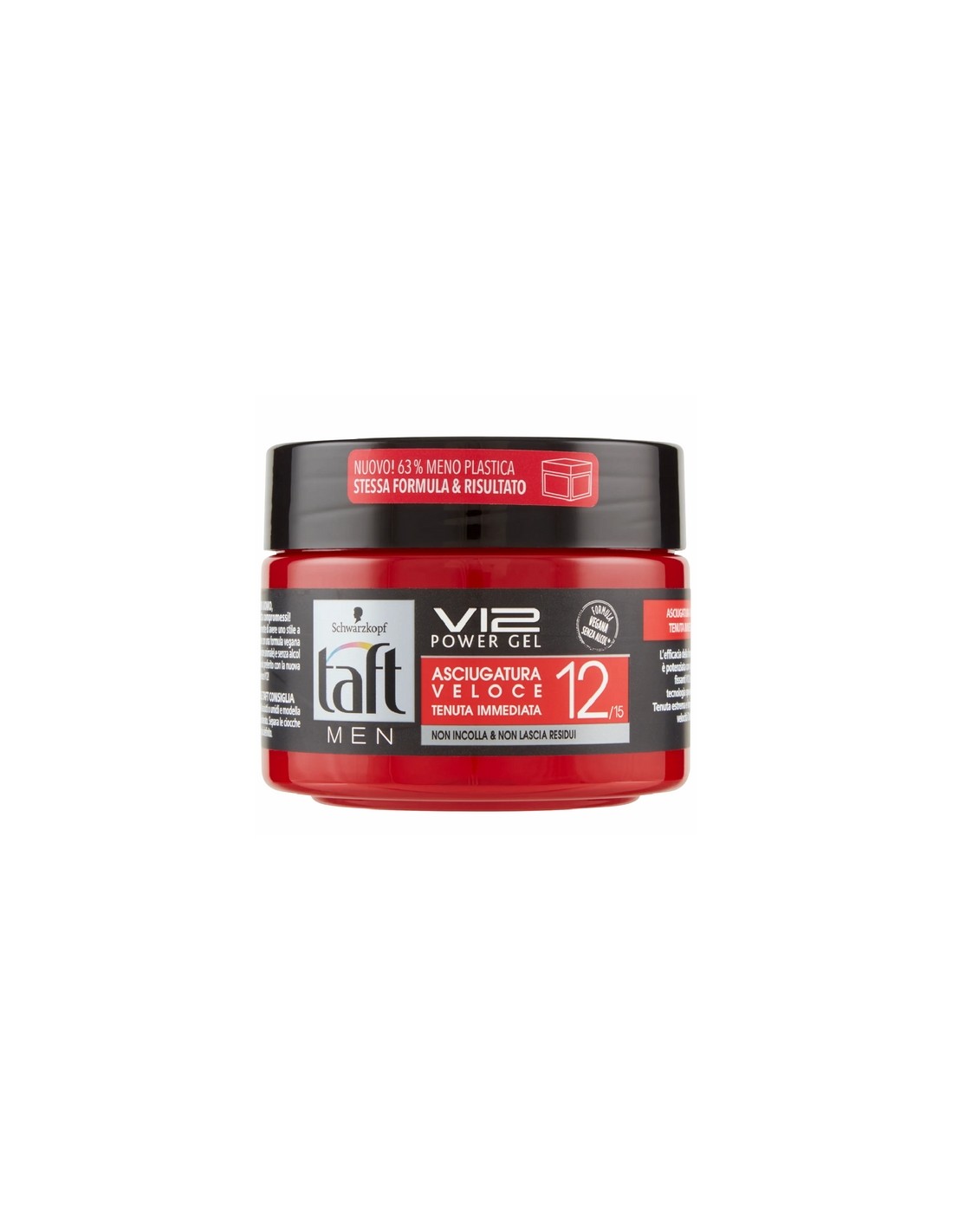 Taft V12 Power Gel di Schwarzkopf ti permette di avere uno stile a lunga durata, ora anche con una formula vegana (senza ingredienti di origine animale) e senza alcol (Etanolo)! Crea il tuo look preferito con la nuova formula asciugatura veloce V12!
