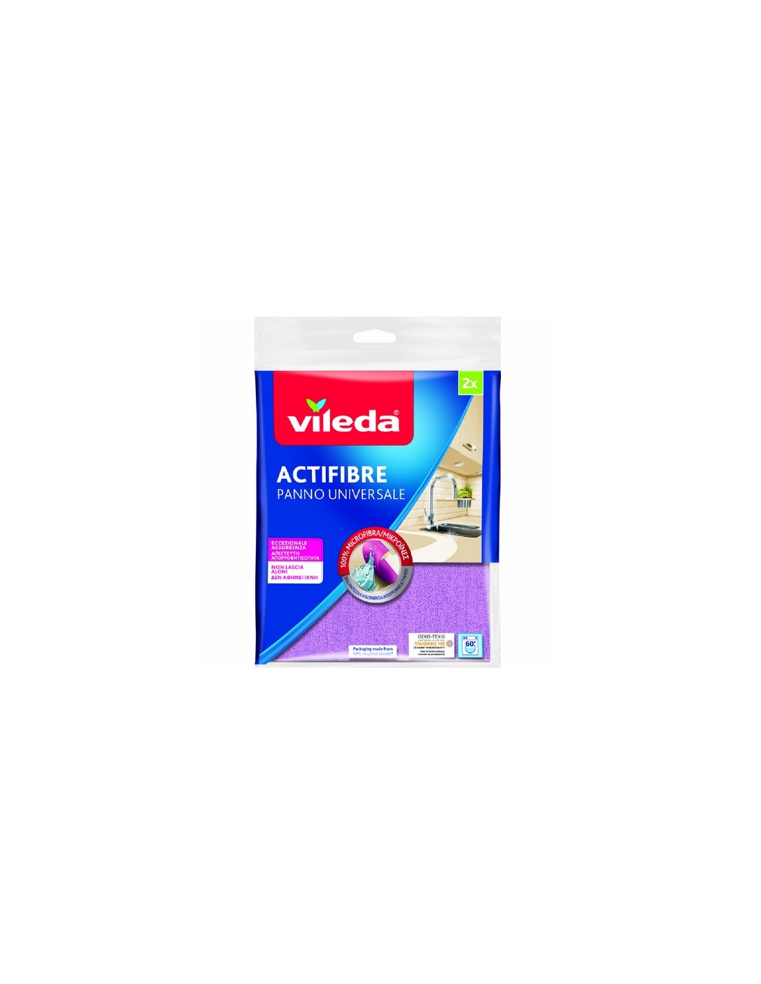 Dall’esperienza di Vileda nasce un panno multiuso con una tecnologia unica ed esclusiva: Vileda Actifibre, la nuova generazione di microfibra che pulisce come la migliore microfibra ed in più , grazie al rivestimento in alcol polivinilico (PVA), assorbe attivamente e trattiene i liquidi all'interno della propria struttura fibrosa, come nessun altro. Vileda Actifibre garantisce prestazioni pulenti straordinarie, rimuovendo efficacemente tutti i tipi di sporco umido, come ad esempio miele, marmellata, succo di frutta, latte, vino, sugo, ecc.