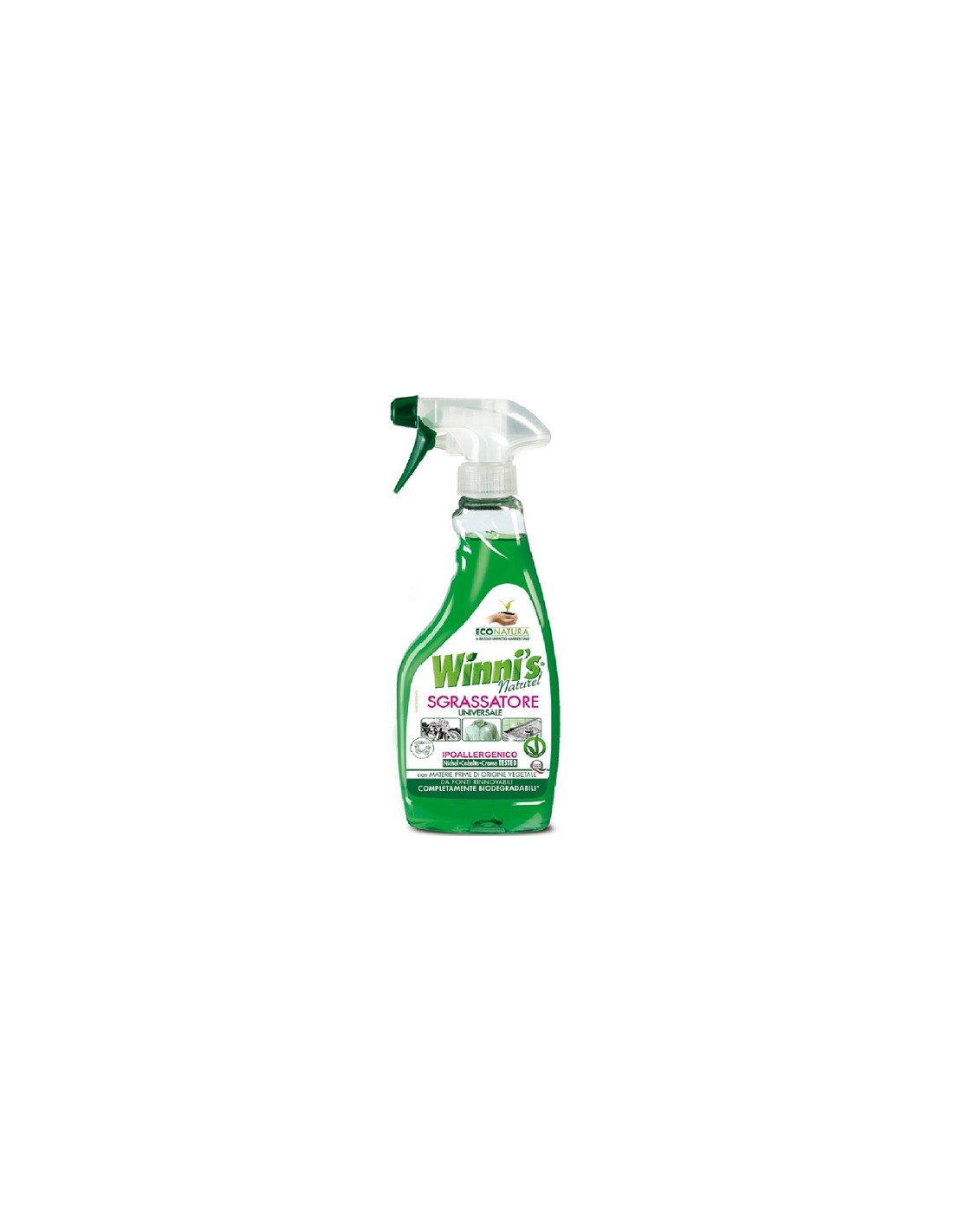A tutti piace avere una cucina brillante e pulita ma non sempre si ha il tempo per passare e ripassare. In più molti prodotti che si trovano nei supermercati possono risultare aggressivi soprattutto per le superfici di ultima generazione. Winni's Sgrassatore utilizza il potere della natura grazie ai tensioattivi di origine vegetale, per rimuovere sporco, grasso e macchie da padelle e teglie, forni, cappe, piani di lavoro e tutte le superfici lavabili della cucina. Inoltre può essere utilizzato per pulire a fondo infissi, tapparelle e componenti meccanici di biciclette, moto ed auto, persino i cerchioni delle ruote. Pur avendo una formulazione a ridotto impatto ambientale ha prestazioni paragonabili agli sgrassatori tradizionali e può essere impiegato anche come ottimo pretrattante per macchie grasse di colletti, polsini e zona ascellare su tessuti bianchi (particolarmente indicato il prodotto Winni's al Marsiglia o colorati resistenti.