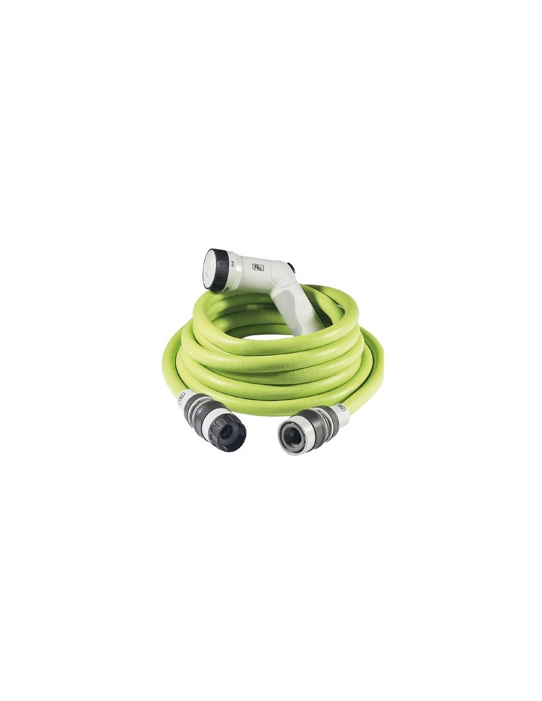 In dotazione 2 raccordi a scatto (1 con acquastop) e presa rubinetto 1"-3/4", pistola multigetto (4 tipologie di getto), impugnatura in gomma antiscivolo.