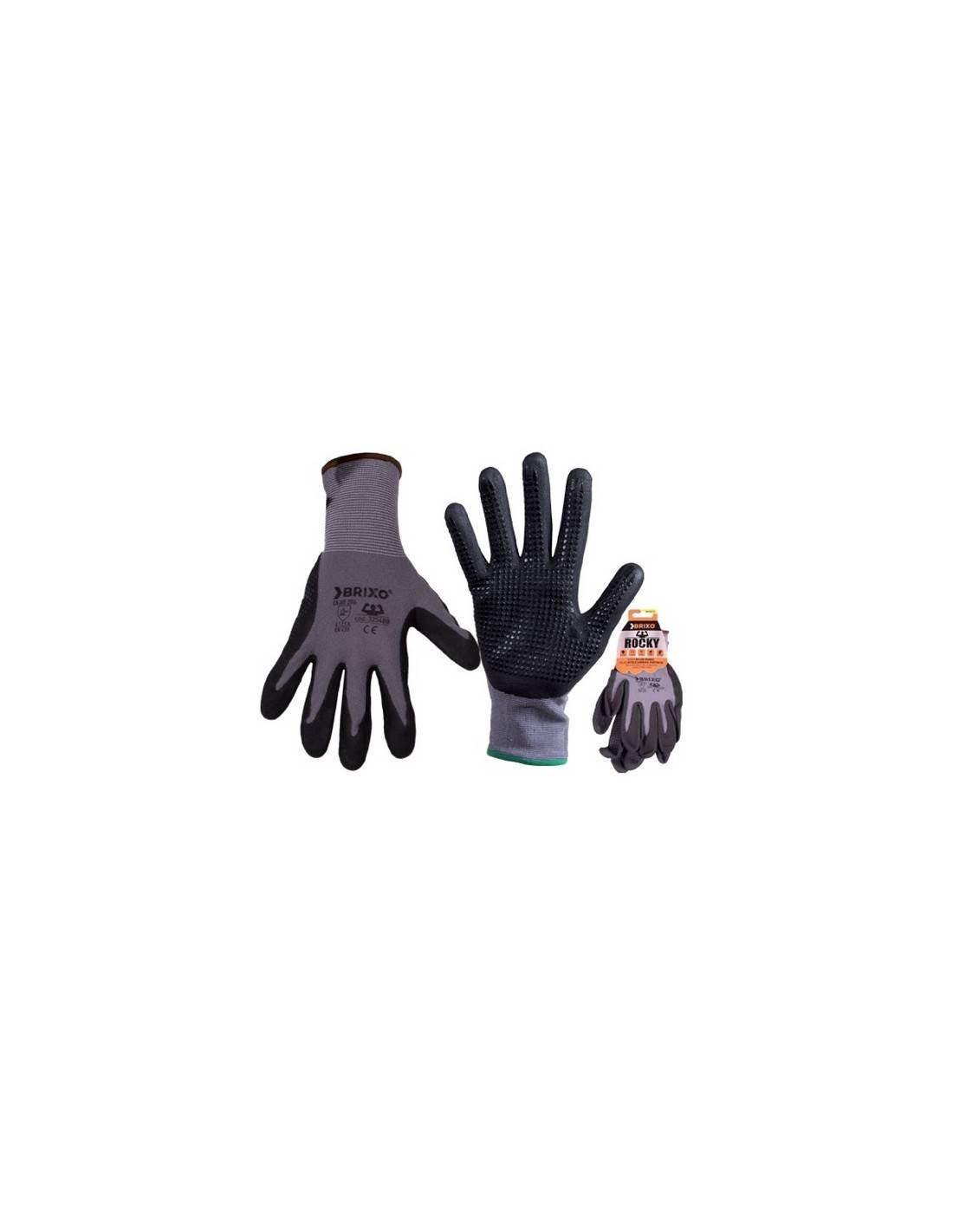 Dorso in Nylon-Spandex, palmo in nitrile sabbiato e puntinato. Ottima resistenza all'abrasione, notevole flessibilità, forma ergonomica. Palmo puntinato per un maggior grip.