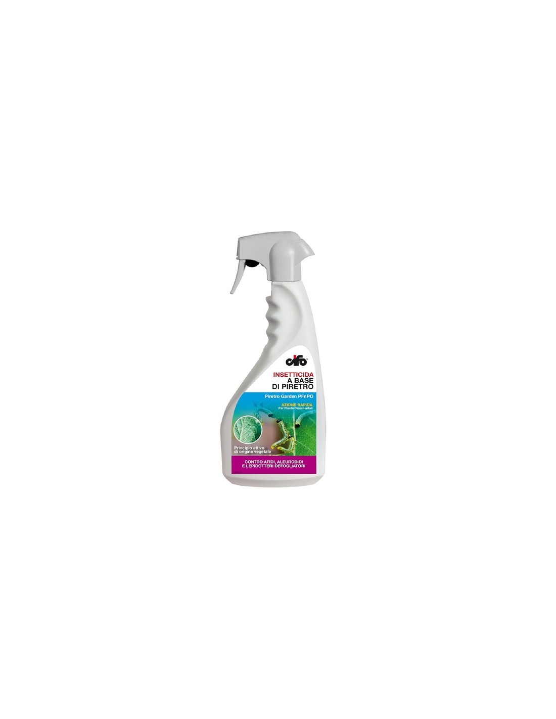 È un insetticida di contatto ad azione rapida a base di Piretro naturale che protegge le piante fiorite (come rosa, azalea, begonia, geranio, ortensia, oleandro), le piante verdi da appartamento (come ficus, dracaena, filodendro, felce) e le piante ornamentali in genere, dall’azione dannosa di insetti come Afidi, Aleurodidi (Mosca Bianca) e Lepidotteri defogliatori.