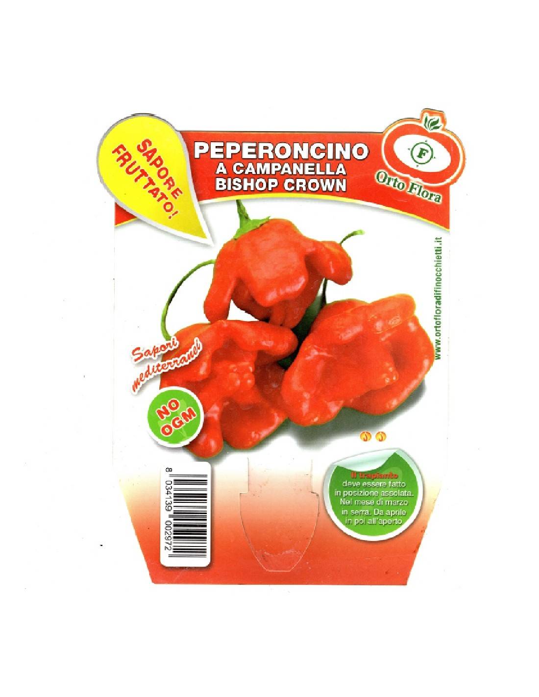Il Bishop’s Crown è una delle varietà di peperoncini appartenenti alla categoria delle “capsicum baccatum”, ovvero piante con frutti di media piccantezza, ma molto carnosi e ottimi per svariati utilizzi. Le sue origini sono del sud America, dove le varietà sono chiamate Aji, il suo nome attuale, dopo essere stato importato in Europa è dato dalla sua “forma a campanella”.