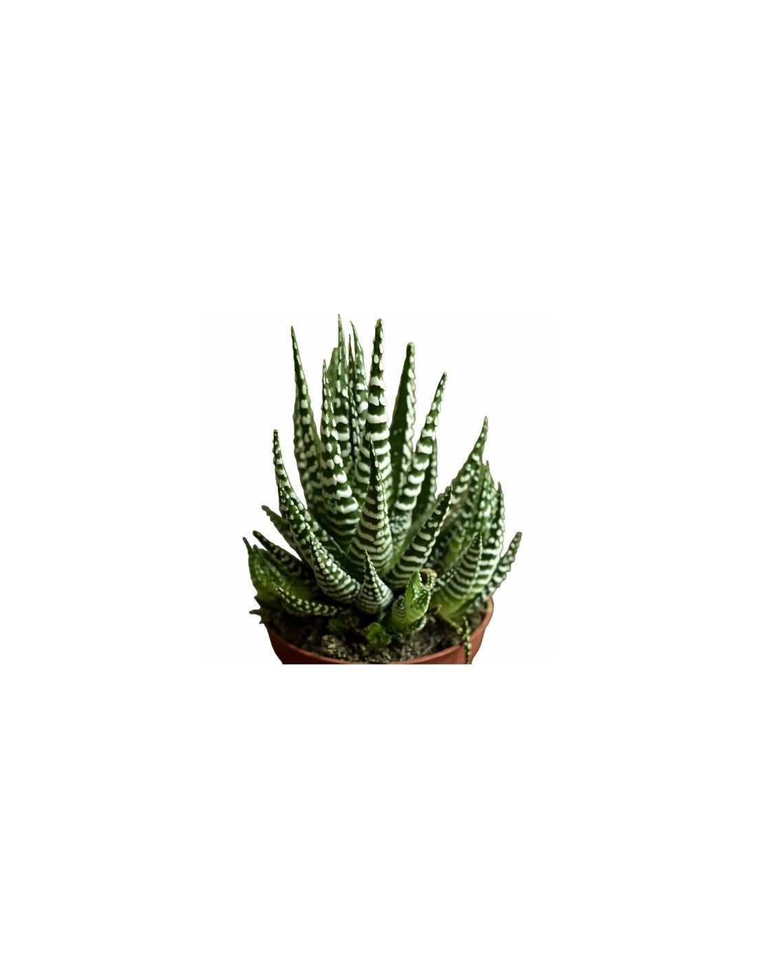 L'haworthia fasciata appartiene alle piante succulente e si caratterizza per le foglie allungate, appuntite e strette, attraversate in larghezza da rilievi di colore bianco. L'haworthia fasciata ha la forma di una rosa con una dimensione che in genere non oltrepassa 10 centimetri in altezza e larghezza.