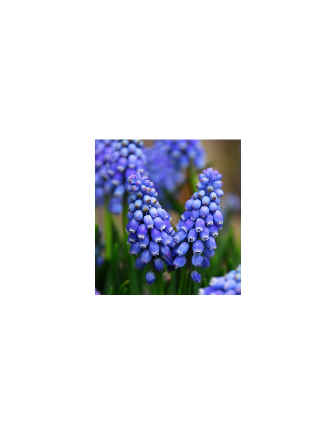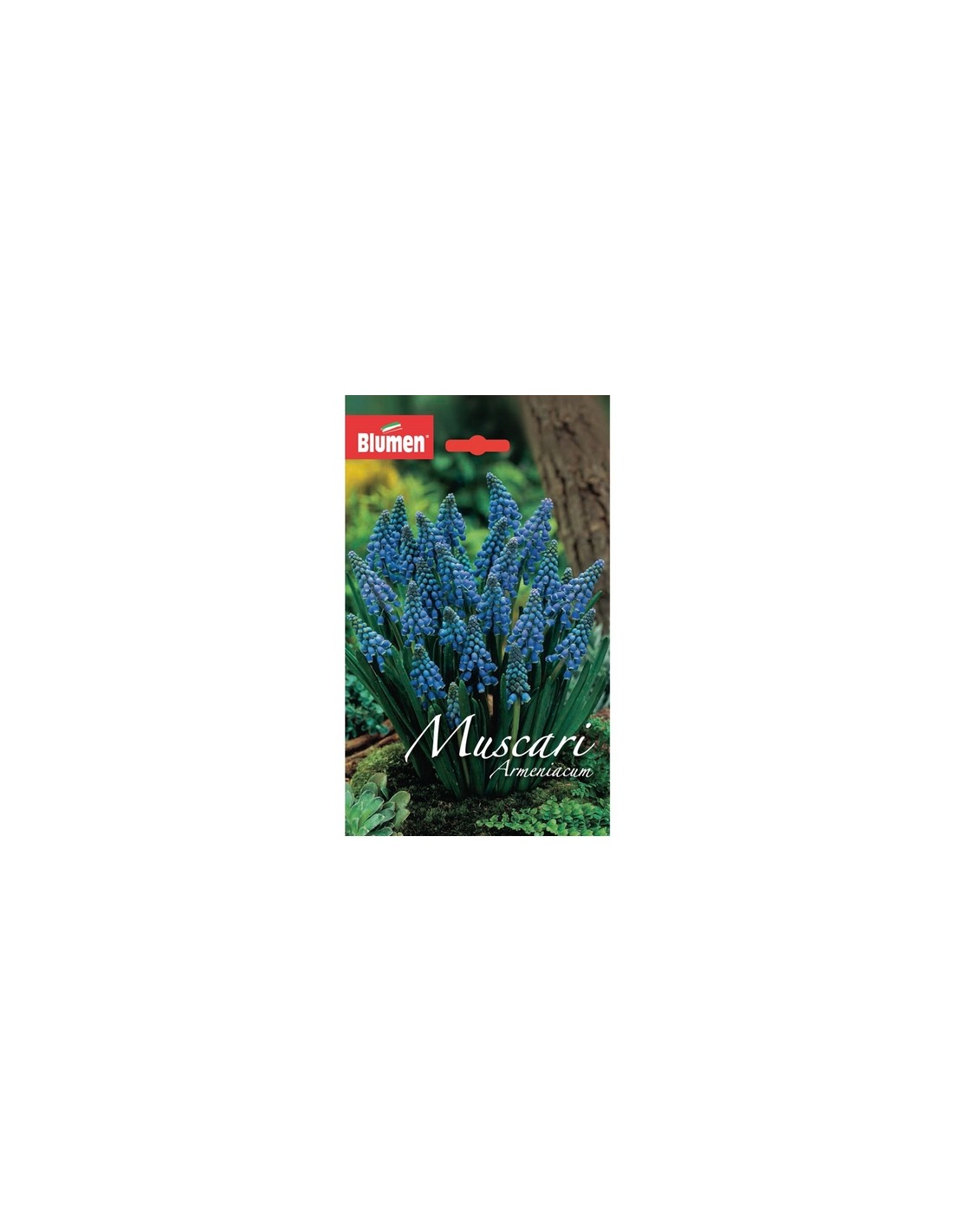 I piccoli bulbi producono, spesso già in autunno, sottili foglie nastriformi, leggermente carnose, riunite in piccoli ciuffi, di colore verde brillante. Alle foglie molto piccole, riuniti in sottili spighe compatte, tipicamente di colore blu intenso. Esistono muscari ibridi e botanici di colore lilla, violetto, bianco, giallo; anche se in generale il colore tipico dei muscari resta il blu.