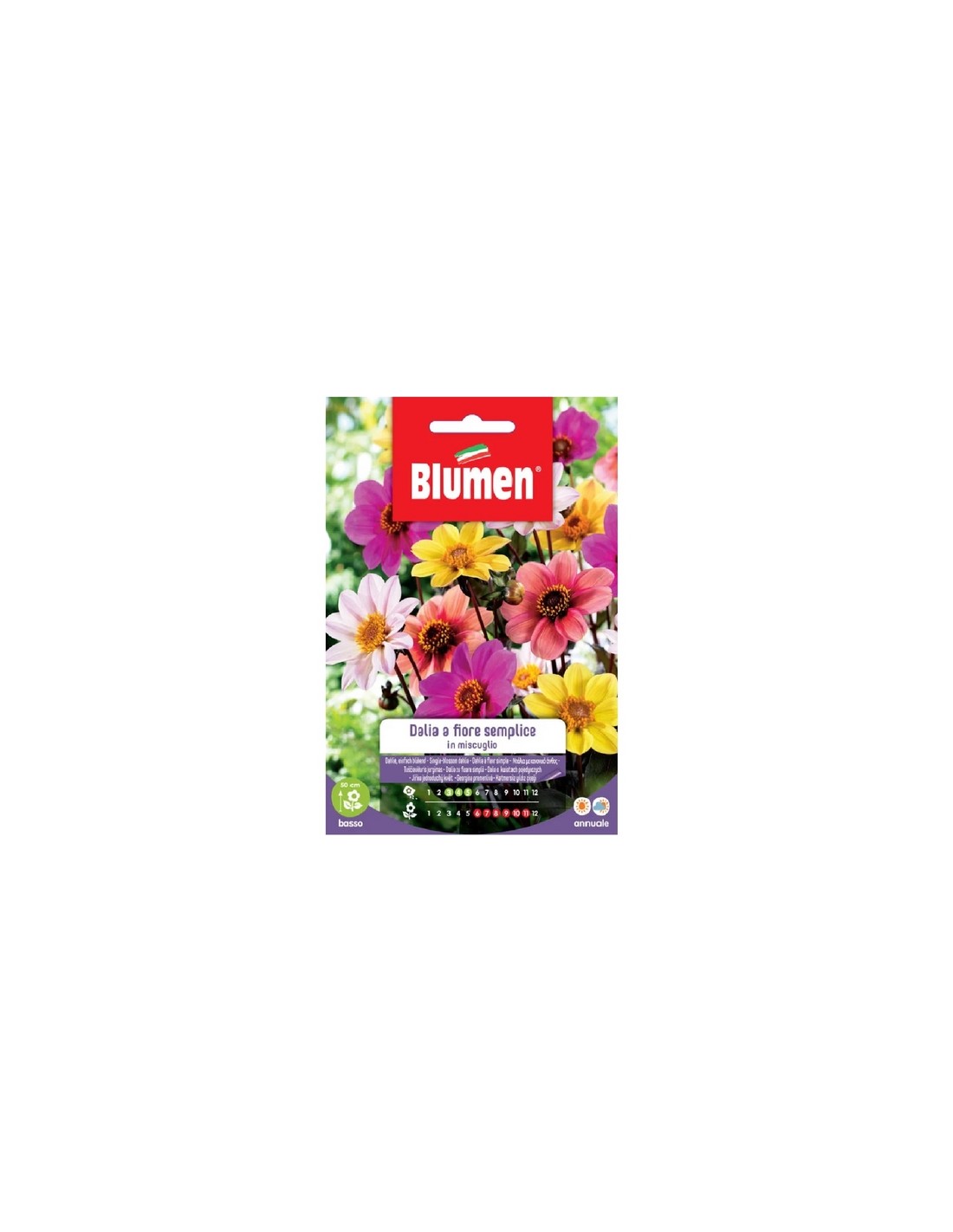 Dalia a fiore semplice in miscuglio: Pianta annuale a fioritura prolungata dai fiori semplici di colori vivaci. Indicata per aiuole e bordure basse.